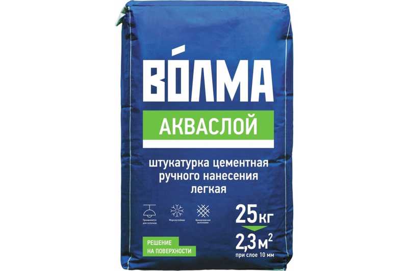«ВОЛМА-Акваслой» - сухая легкая цементная штукатурная смесь на основе портландцемента с легкими наполнителями, полимерными и минеральными добавками, улучшающими эксплуатационные свойства раствора, трещиностойкая, армированная волокнами, для ручного нанесения снаружи и внутри здания.