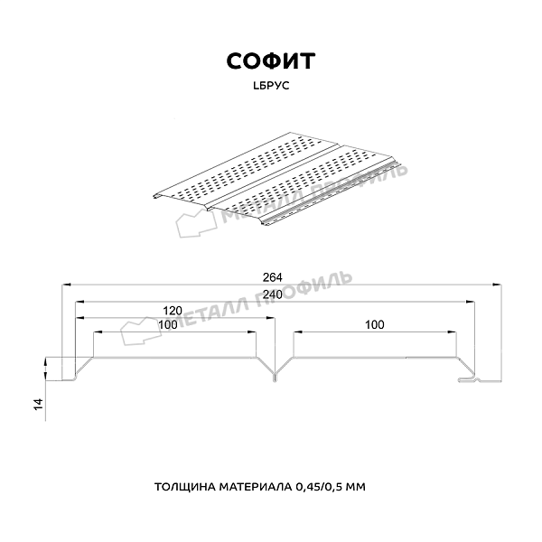 Софит – это панели сайдинга Lбрус, на поверхности которых нанесена перфорация. Используется для подшивки кровельных свесов. Софит добавляет завершённый и эстетичный вид дому. Отверстия в панелях поддерживают свободную циркуляцию воздуха под кровлей и предотвращают появление грибка, плесени, конденсата.